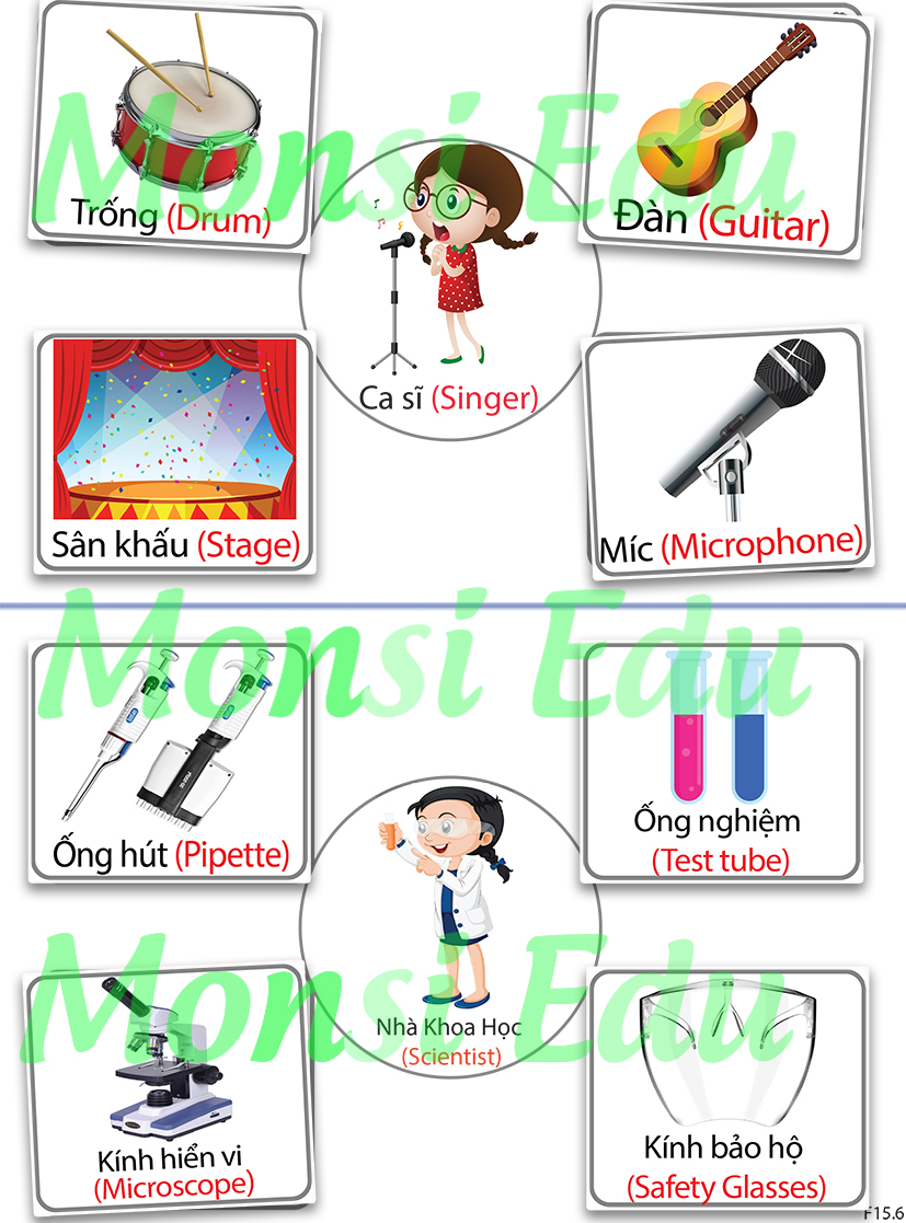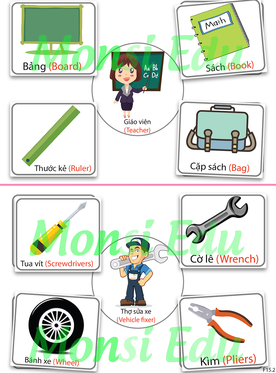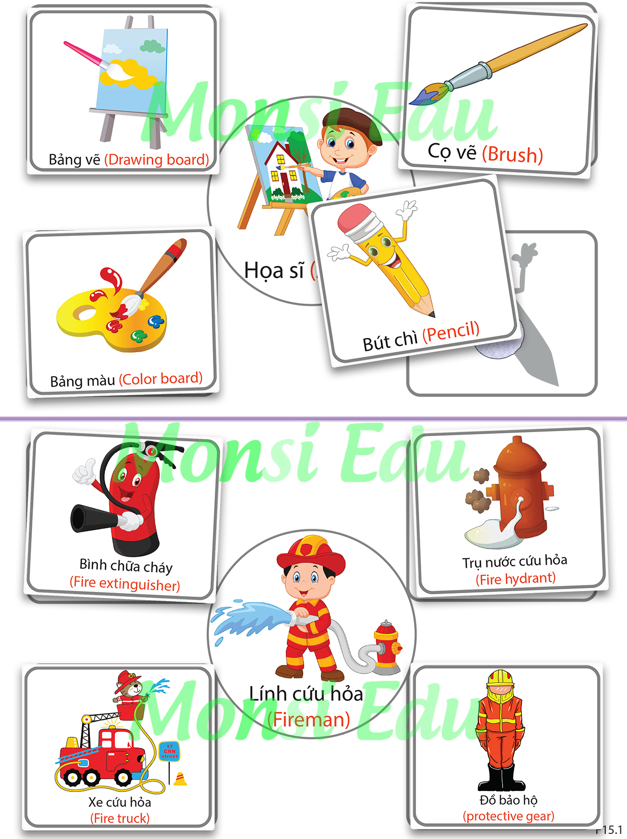 Các chủ đề nghề nghiệp và các hình ảnh liên quan trực tiếp đến nghề nghiệp giúp bé dễ nhận biết và nhớ lâu (học từ vựng tiếng anh):