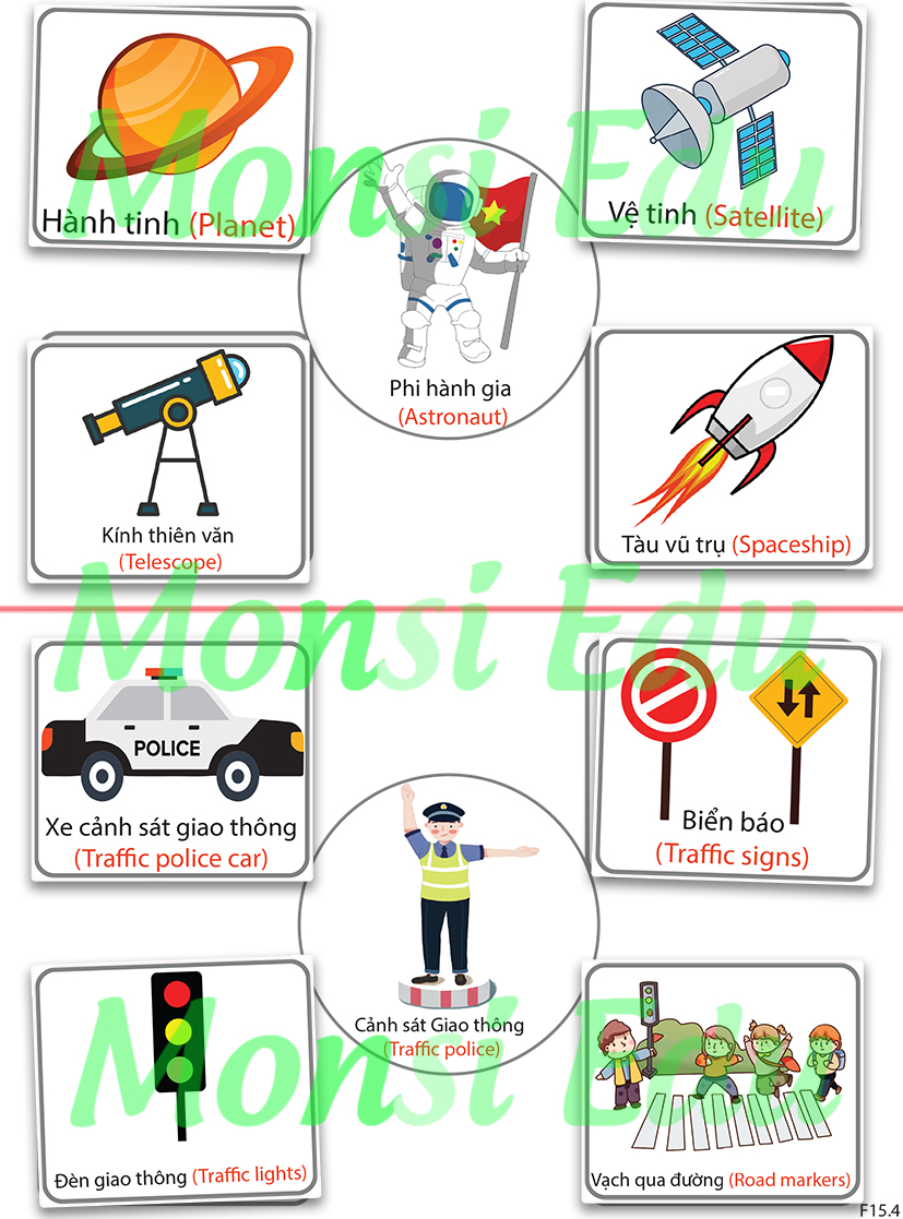 • Bác sĩ: thuốc, xe cứu thương, nhiệt kế, tai nghe nhịp tim.